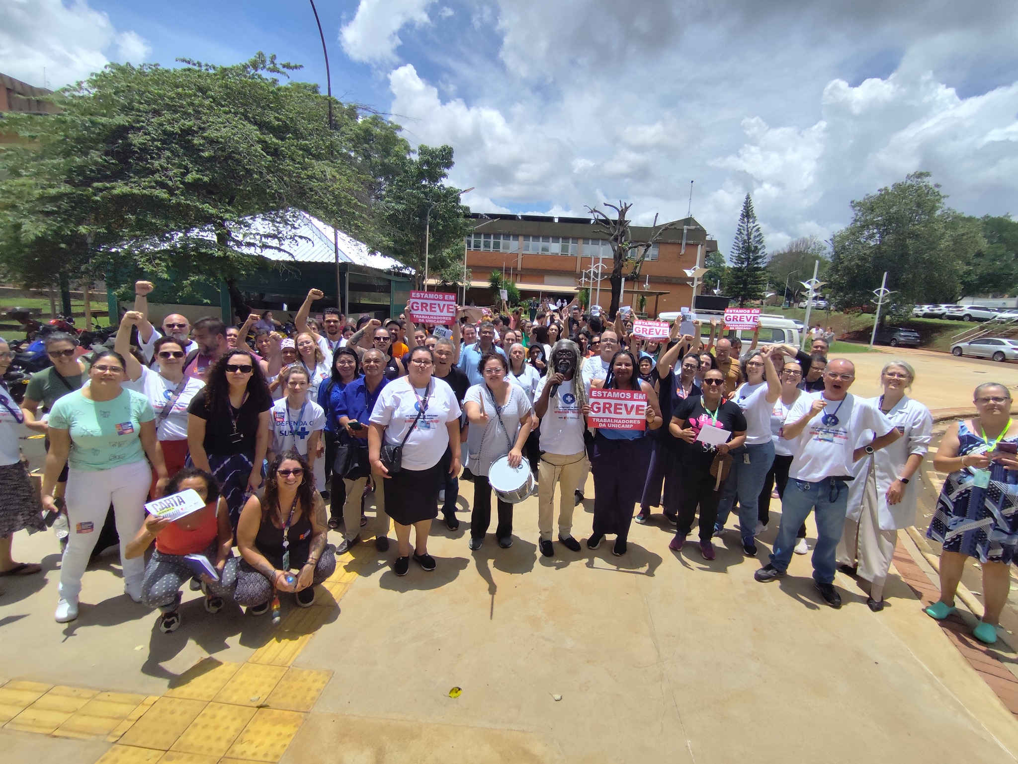 Paralisação teve início na manhã de ontem, 15 de dezembro, e segue até hoje, terça-feira, 16, contra o projeto de autarquização da área da saúde da universidade.