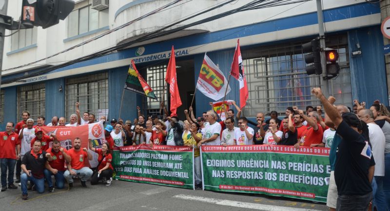 Na manhã desta segunda-feira (28), sindicatos e movimentos sociais realizaram um ato em Campinas para denunciar o descaso nas perícias médicas do INSS e exigir respeito e dignidade para os trabalhadores que adoecem ou se acidentam no exercício de suas funções. A mobilização ocorreu em referência ao Dia Nacional em Memória às Vítimas de Acidentes e Doenças do Trabalho, data que marca a luta por condições laborais mais seguras e pela garantia dos direitos dos trabalhadores adoecidos.