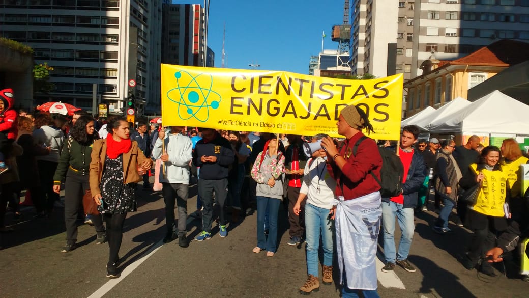 Na tarde de domingo, dia 7, cientistas, professores, pesquisadores e estudantes ocuparam a Av. Paulista para protestar contra os recentes cortes no setor da ciência nacional. O SINTPq participou e deu corpo a manifestação junto com outras associações como a Academia de Ciências do Estado de São Paulo, Associação Nacional de Pós-Graduandos, Associação dos Pesquisadores Científicos do Estado de São Paulo e o Instituto Questão de Ciência.
