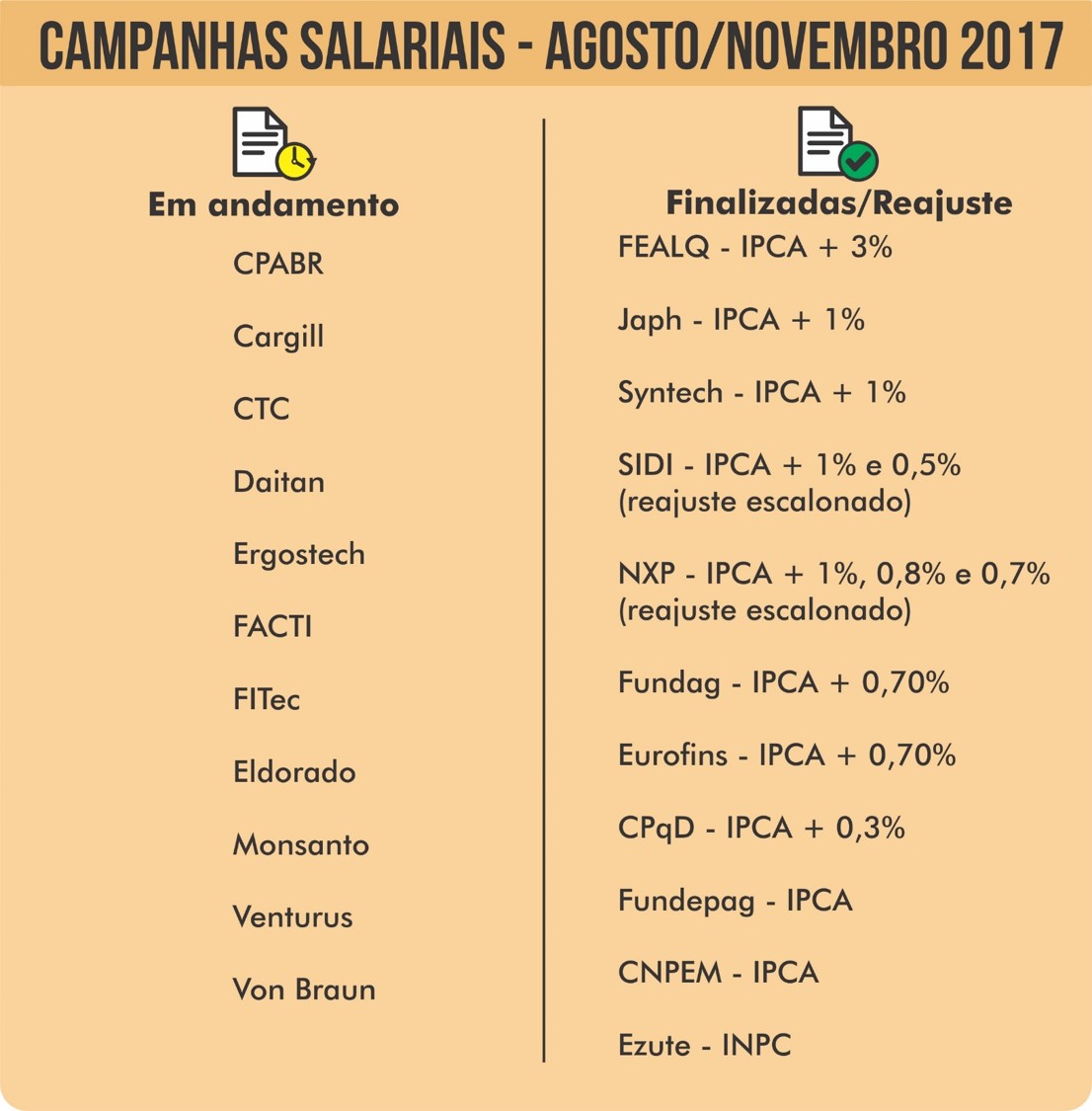 Outras campanhas salariais já foram encerradas ou estão em andamento. A relação está disponível no quadro abaixo.