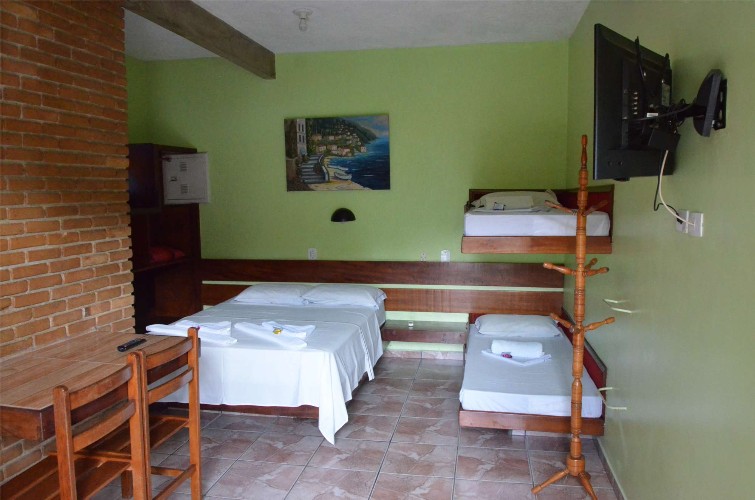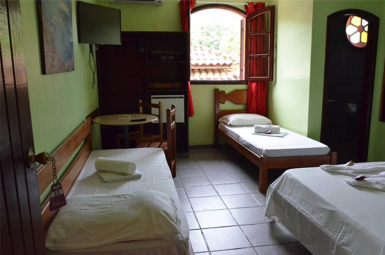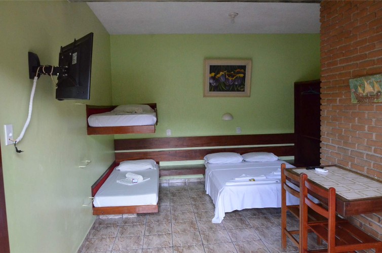 São quartos duplos, triplos, quádruplos e um conjugado para até 5 pessoas. São 25 quartos, totalizando 86 leitos. Todos contam com: