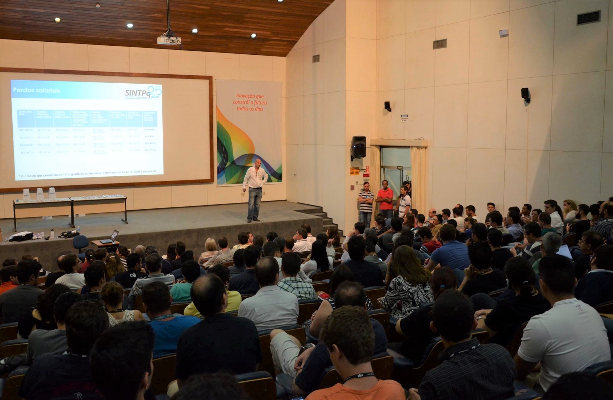 Devido a problemas da empresa com o agendamento do auditório e a inviabilidade do mesmo para quinta-feira, o SINTPq necessitou reagendar a assembleia para a próxima terça-feira, dia 20, a partir das 8h.