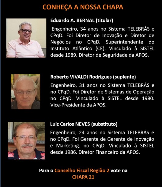 Na Região 2 vote para Conselho Fiscal-Chapa 21