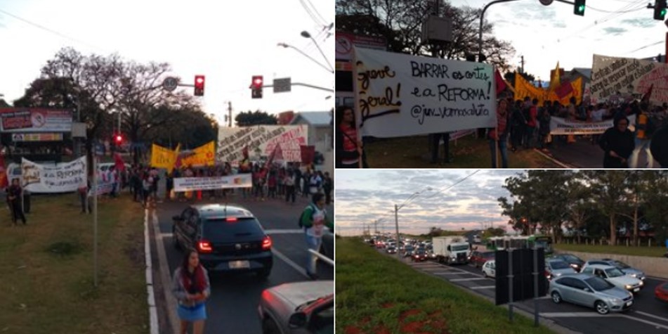 Bloqueio no cruzamento da rodovia que liga Campinas a Paulínia com a rodovia Dom Pedro I