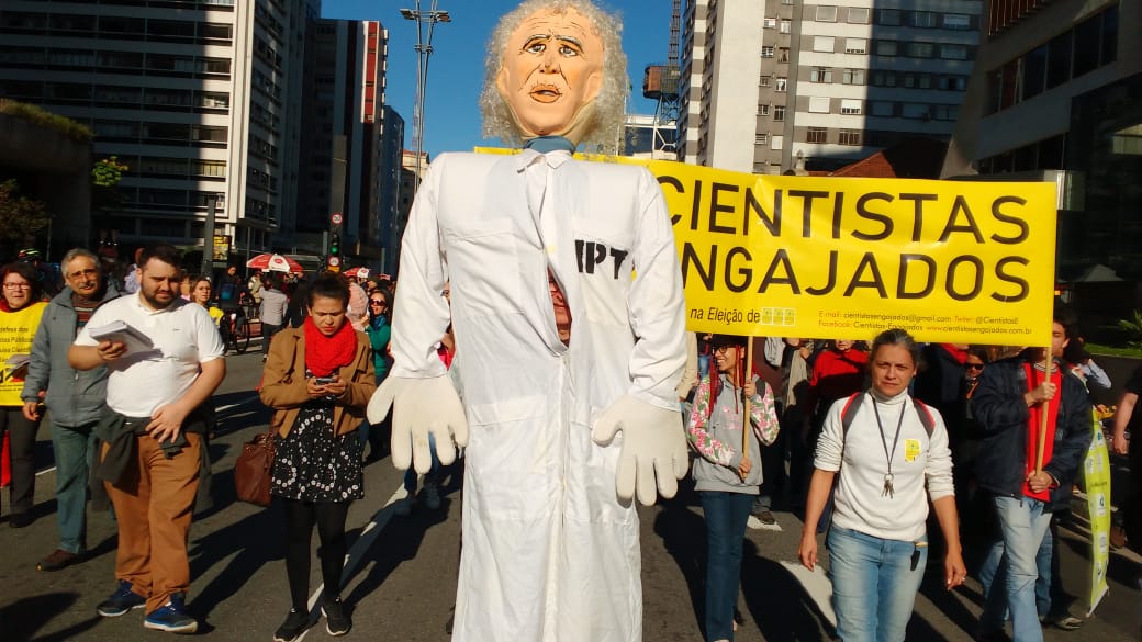 Na tarde de domingo, dia 7, cientistas, professores, pesquisadores e estudantes ocuparam a Av. Paulista para protestar contra os recentes cortes no setor da ciência nacional. O SINTPq participou e deu corpo a manifestação junto com outras associações como a Academia de Ciências do Estado de São Paulo, Associação Nacional de Pós-Graduandos, Associação dos Pesquisadores Científicos do Estado de São Paulo e o Instituto Questão de Ciência.