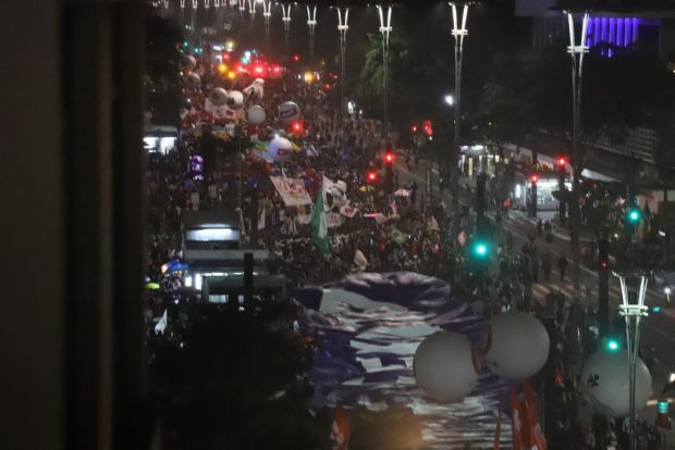 Os manifestantes se concentraram no vão do MASP e saíram em passeata em direção à Praça da República.