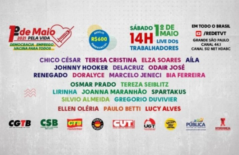 1º de Maio da CUT e Centrais: dia de reflexão, de luta e também de muita música28/04/2021Será um dia de reflexão e de fortalecimento da luta da classe trabalhadora, mas também de muita música.