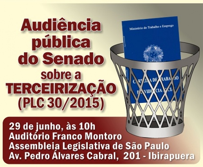 Audiência pública do Senado em São Paulo discutirá terceirização24/06/2015