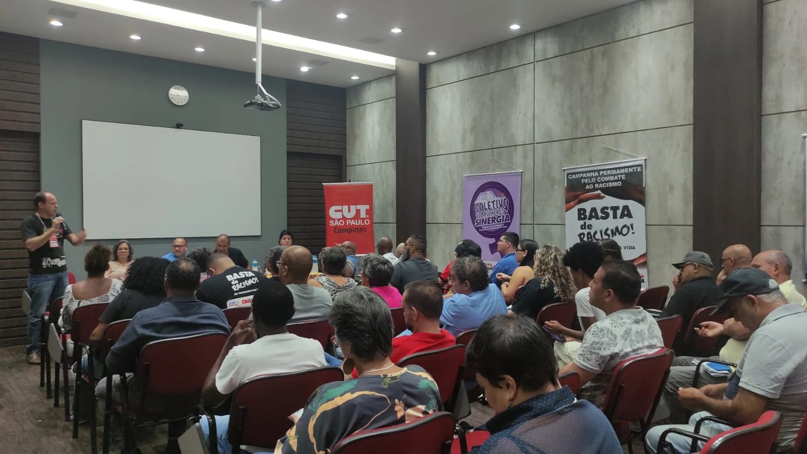 Plenária da CUT em Campinas reúne lideranças sindicais e políticas para debater desafios e perspectivas para o Brasil16/02/2024José Paulo Porsani, presidente do SINTPq, destaca pautas sindicais da categoria diante da nova conjuntura