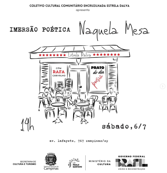 Sarau 'Naquela Mesa' se propõe a trocas de inspirações e experiências04/07/2024Permitindo que os presentes falem sobre os desafios e prazeres se expressar através da poesia