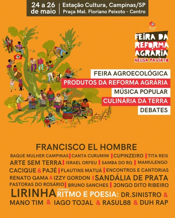 MST São Paulo realizará Feira da Reforma Agrária em Campinas20/05/2024Feira, que acontecerá na Estação Cultura, em Campinas, homenageia Neusa Paviato, uma militante histórica do MST em São Paulo