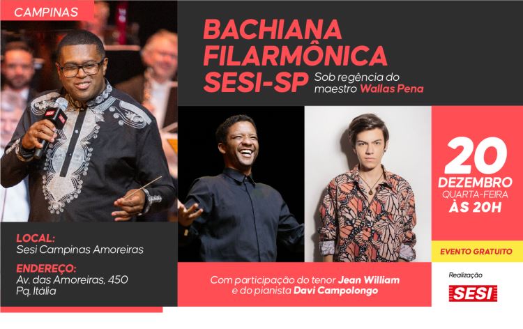 Bachiana Filarmônica realiza concerto de Natal no ginásio do Sesi Campinas18/12/2023Projeto de formação de instrumentistas e acesso à música erudita chega ao SESI Campinas Amoreiras com concerto especial de Natal