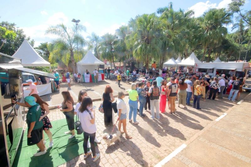 Evento com uma praça de alimentação repleta de sabores de diferentes partes do mundo