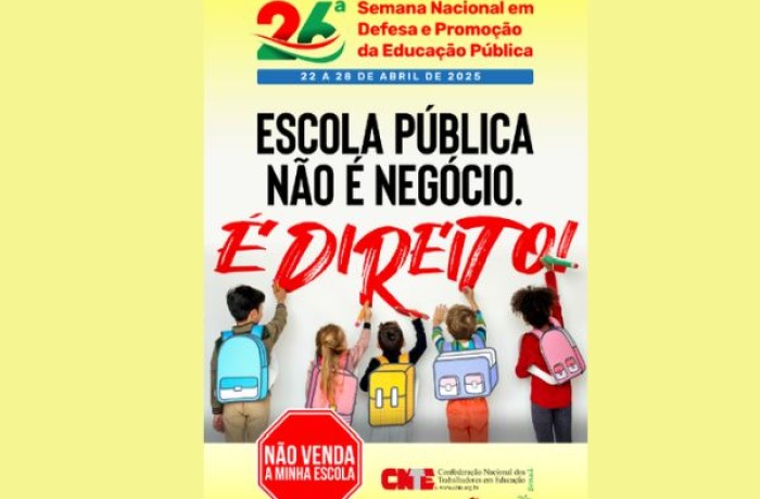 A 26ª edição da Semana Nacional em Defesa e Promoção da Educação Pública, promovida pela Confederação Nacional dos Trabalhadores em Educação (CNTE), ocorrerá entre os dias 22 e 28 de abril de 2025. Com o tema "Escola Pública não é Negócio. É Direito!", o evento visa alertar a sociedade sobre os riscos da privatização, militarização e a desvalorização dos profissionais da educação, além de reforçar a luta por um ensino público, democrático e de qualidade.