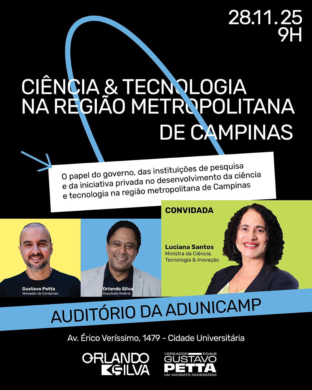 Campinas reafirma protagonismo nacional em ciência e tecnologia28/11/2025Ministra Luciana Santos e representantes de instituições da região discutem investimentos, inovação e inclusão durante encontro na Unicamp