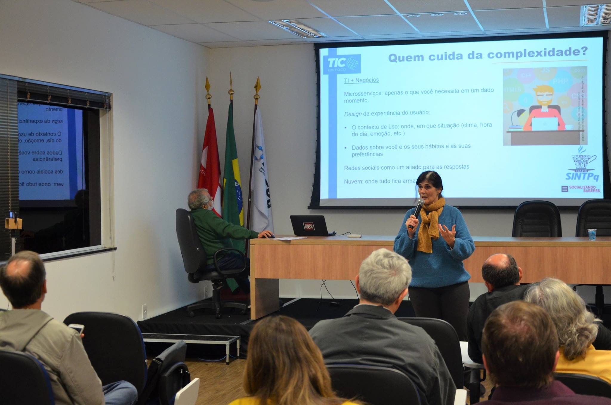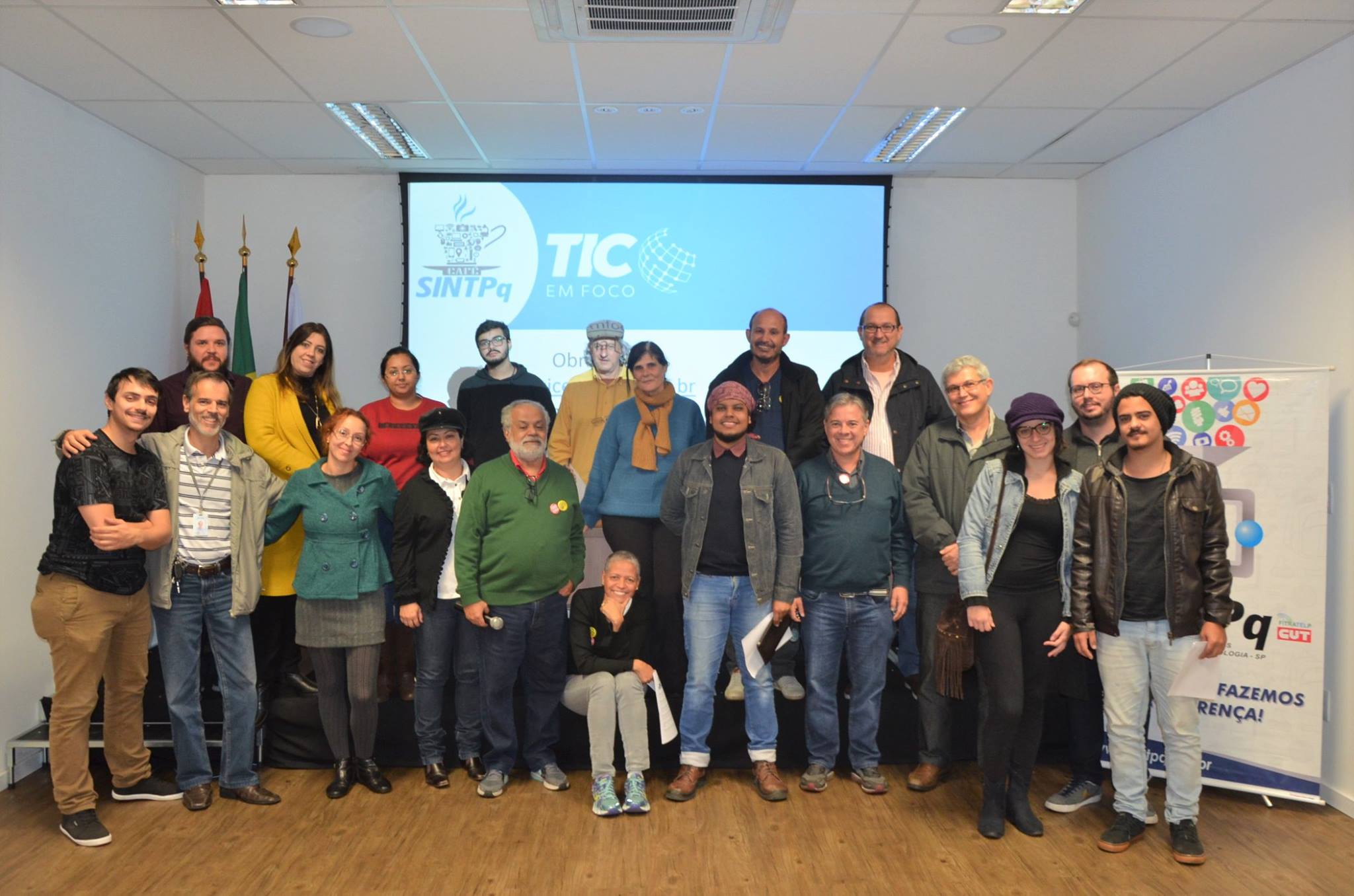 A atividade foi resultado de uma parceria entre SINTPq e TIC em Foco, site especializado na produção e disseminação de dados e informações sobre tecnologia, inovação e comunicação, além da promoção de eventos e debates relacionados ao tema (www.ticemfoco.com.br). Confira mais fotos do evento.