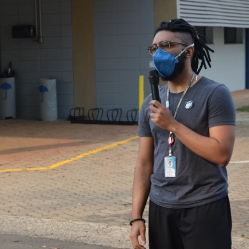 Presidente do SINTPq, José Paulo Porsani, abre assembleia no CNPEM, que também foi transmitida online para profissionais em home office (FOTO: Fernando Almeida/Comunicação SINTPq)