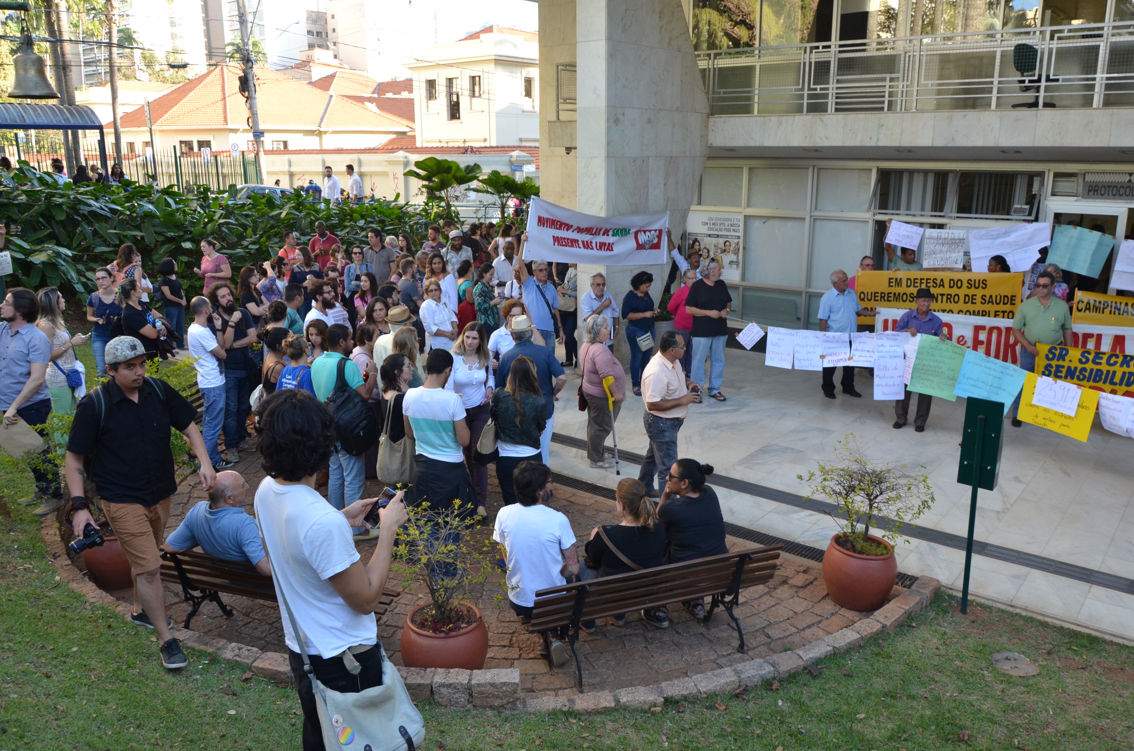 Aproximadamente 100 pessoas participaram da manifestação, que contou com a presença de membros do CMS, movimentos sociais, sindicatos e de cidadãos inconformados com a atual situação da saúde pública em Campinas.