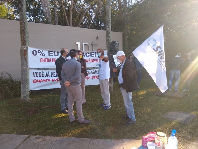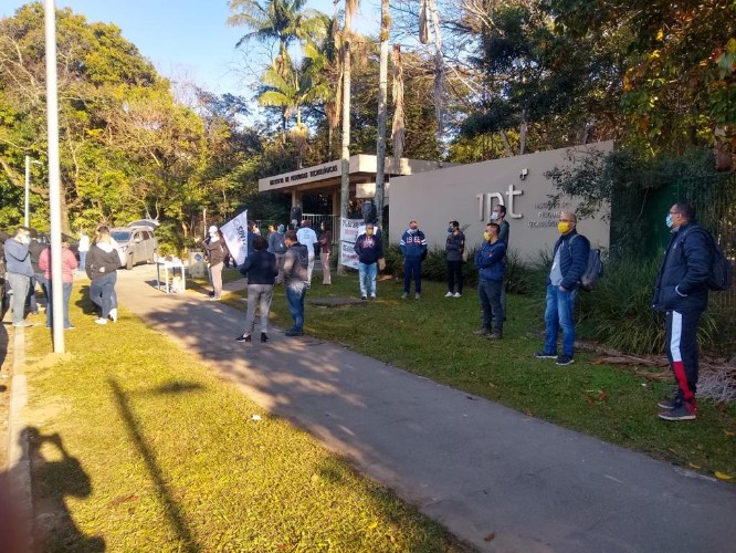 Teve início hoje a greve dos trabalhadores do IPT (Instituto de Pesquisas Tecnológicas). A contraproposta oferecida na campanha salarial 2021/22 foi de 0% de reajuste pelo terceiro ano consecutivo. Os profissionais protestaram em frente ao instituto para reivindicar seus direitos.