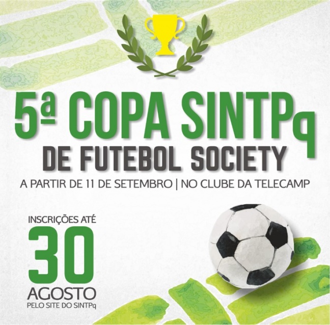 Estão abertas as inscrições para a 5ª Copa SINTPq de Futebol Society14/08/2017