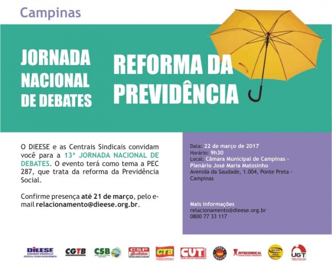 DIEESE e Centrais Sindicais realizam debate sobre reforma da previdência na quarta-feira (22)17/03/2017